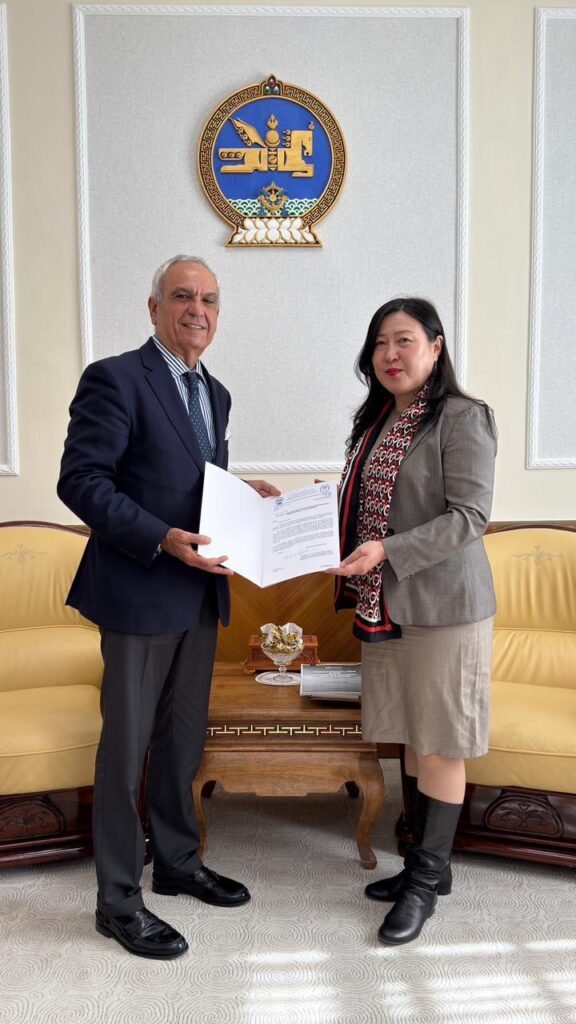 We would like to thank Hon. Nicola Carè, President of the Italy-Mongolia Interparliamentary Friendship Group, for his presence at the official inauguration of the Chamber of Commerce. During his mission to Mongolia, Hon. Carè, accompanied by Ambassador Giovanna Piccarreta, had the opportunity to meet his counterpart Hon. Undraa, Dr. Davaadalai, Adviser to the Prime Minister of Mongolia, Amb. Odbayar, Diplomatic Adviser to the President of Mongolia, and Dr. Javkhlan, Presidential Adviser for the White Gold Initiative in support of the light industry, as well as Dr. Dimovska from UNDP.